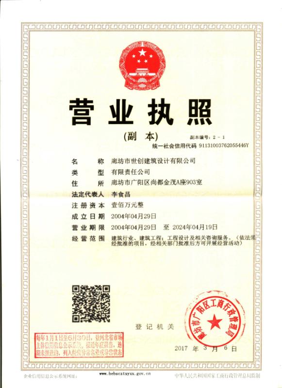 廊坊市世創(chuàng)建筑設(shè)計有限公司,原為廊坊市規(guī)劃設(shè)計院建筑工程設(shè)計所。成立于1997年,多年來本公司在社會各界人士的關(guān)心、支持下,不斷發(fā)展壯大。自2006年3月1日起具有國家建設(shè)部核準的建筑工程乙級設(shè)計證書,證書編號為:A213006026。企業(yè)法人營業(yè)執(zhí)照,注冊號:131003000011148 我公司自創(chuàng)建以來完成各類工業(yè)與民用建筑設(shè)計、咨詢項目共有三百五十多項,建筑面積近三百萬平方米,工程所在地涵蓋廊坊、天津、北京等地區(qū)。并有...